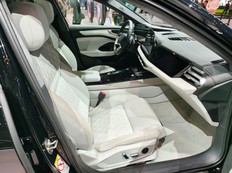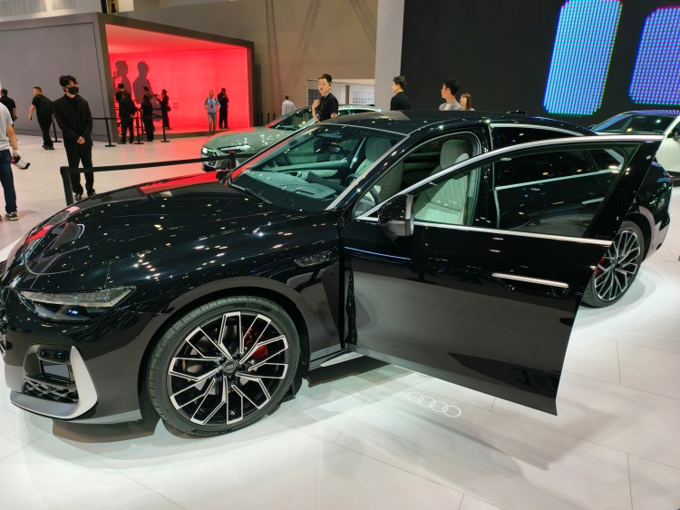 至于旁边那台A6L e-tron,这边简单带一嘴。它是PPE纯电平台的产物,30.98万到43.98万的售价,入门甚至比燃油版还便宜。800V架构,107度电池,CLTC续航最高815公里,快充10分钟能跑300公里出头,四驱版零百加速4.5秒。